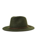 The Wesley is an unfinished wide brim wool felt sport hat by Brixton with leather band. The crown is blocked but the brim falls by its own weight. This one is dyed in a beautiful green mix.