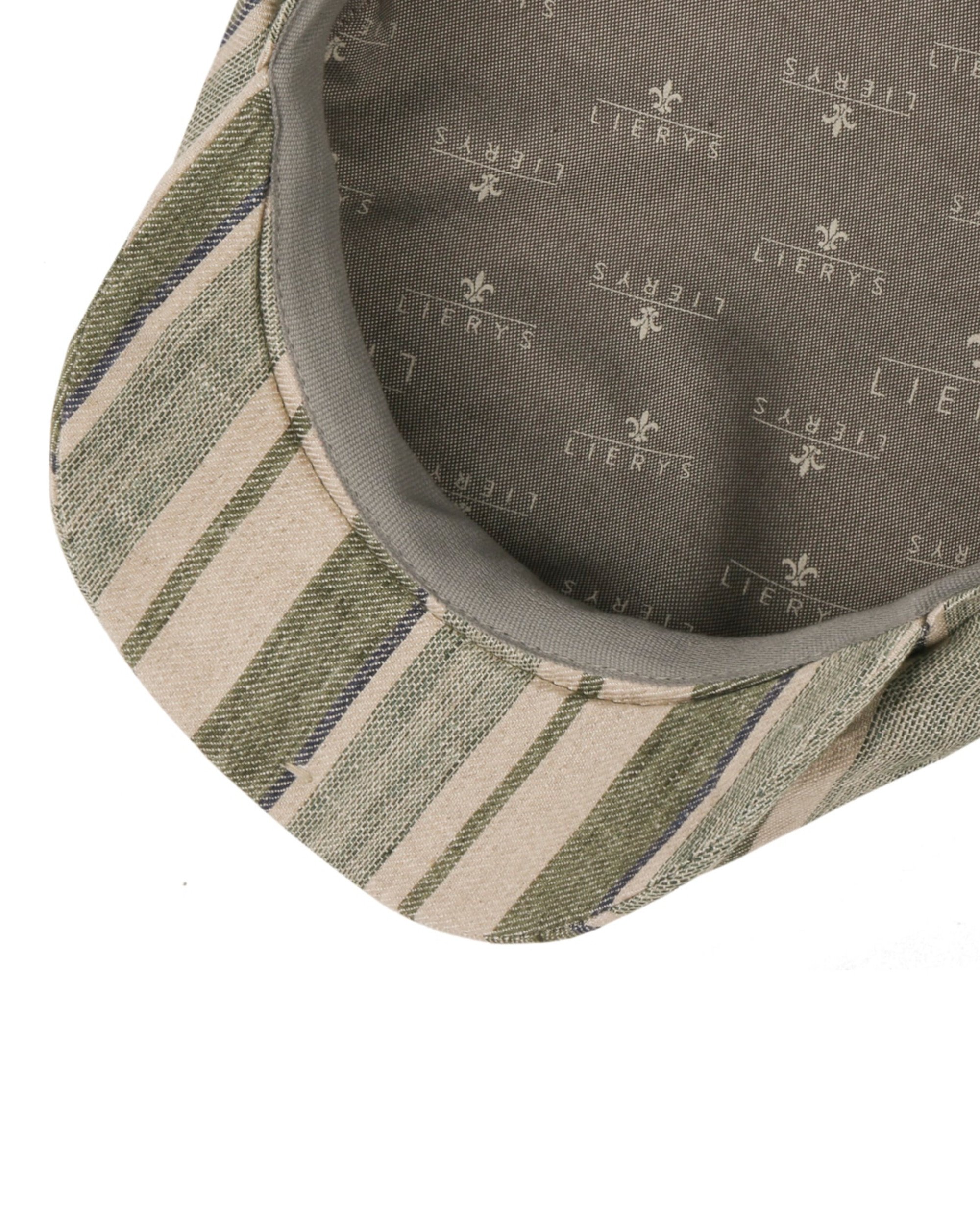 The Belfast model, the quintessential british ivy flat cap developed in Germany, boasts an elegant and timeless look. It pairs effortlessly with any outfit due to its beige and green stripes.