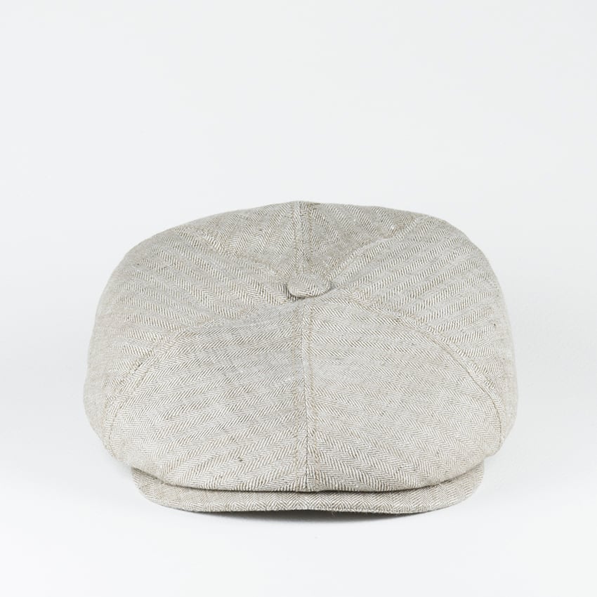 An evolution of the American classic 8 panel newsboy cap. This 6 panel from Stetson is made for people with a thinner face, if the rounded classic style fits so big compared to their face. Made with a little herringbone on it and lined with cotton, feels so good on summer, being soft, cool and light.