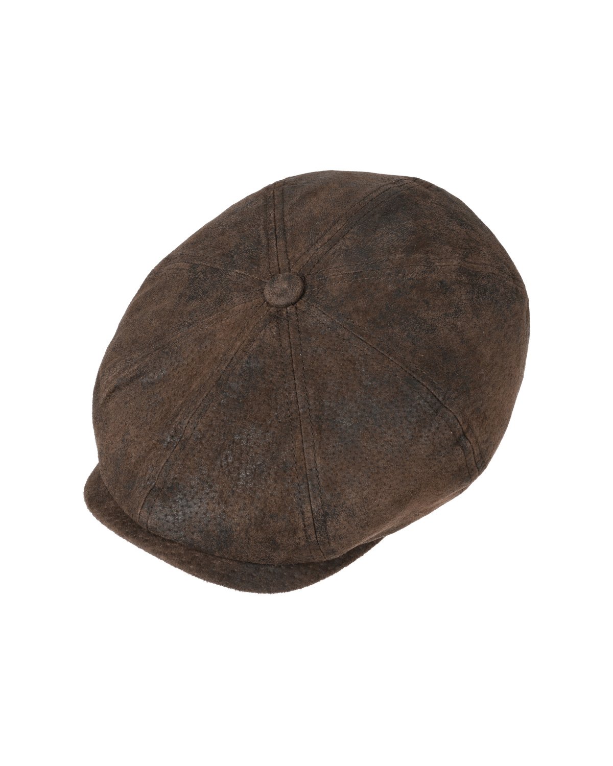 The finest quality brushed pig skin leather on a cap. With an aged look 8 panel chocolate brown newsboy cap from Stetson, the Hatteras shape almost need no description. One of our favorite shapes for the people who are used to wear hats and caps, or ones who want something unique to fit with everything. It also holds the rain and keeps your head dry and warm. "This cap lasts forever" said one of our clients.