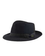 Este es un sombrero fedora de ala mediana estilo Bogart, hecho por Stetson. Ala sin costuras, suave y cómodo hecho por el fieltro de pelo de la mejor calidad, este modelo lleva una cinta de grosgrain en combinación con el color del sombrero, una finísima badana interior y forro satinado. Un clásico de todos los tiempos muy fácil de llevar. Se puede subir y bajar el ala para darle más personalidad.
