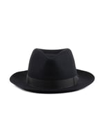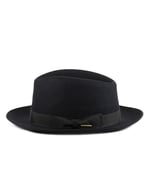 This is a classic medium brim fedora in a bogart style made by Stetson. Seamless, soft and confortable made with the finest fur felt, this model has a grosgrain ribbon trim in a matching color, a very thin inner fabric band and a satin lining. Easy to wear and timeless classic, it's able to turn the front of the brim up or down to give it more personality.