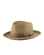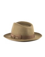 Este es un sombrero fedora de ala mediana estilo Bogart, hecho por Stetson. Ala sin costuras, suave y cómodo hecho por el fieltro de pelo de la mejor calidad, este modelo lleva una cinta de grosgrain en combinación con el color del sombrero, una finísima badana interior y forro satinado. Un clásico de todos los tiempos muy fácil de llevar. Se puede subir y bajar el ala para darle más personalidad.