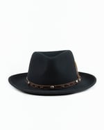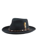 Spectacular Stetson western hat with pretty flatten and shorter brim. The Vail in black is made with Stetson's own American wool felt called VitaFelt®, so that means it's waterproofed, crushable, light weight, soft and all made in the USA. It comes with a removable feather and is shipped with a Stetson hat box at no extra charge.